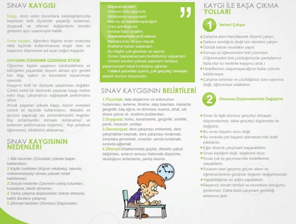 – Sınava mümkün olduğunca iyi hazırlanın. Sınav kaygısını azaltmanın en temel yolu sınav konusuyla ilgili bilginizden emin olmanızdır.